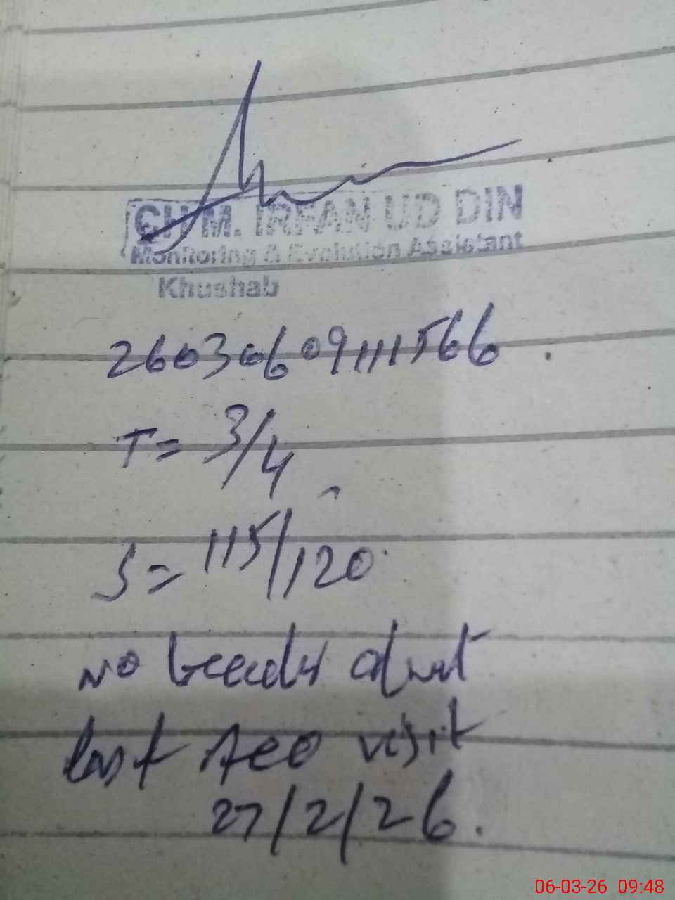 | Remarks (Use Separate Page if Required): GES 36 db student on sis 120 student on register 120 head count 115 no teacher absent one on leave last visit aeo 27/2/26 teaching staff and non teaching staff required | |||||