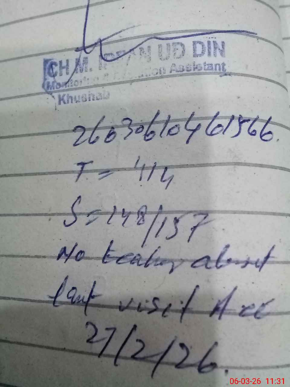 | Monitoring Date: 06-03-2026 | Start Time: 06-03-2026 10:46 AM | End Time: 06-03-2026 11:31 AM | Name of MEA: MU**** IR**** UDDI**** | |