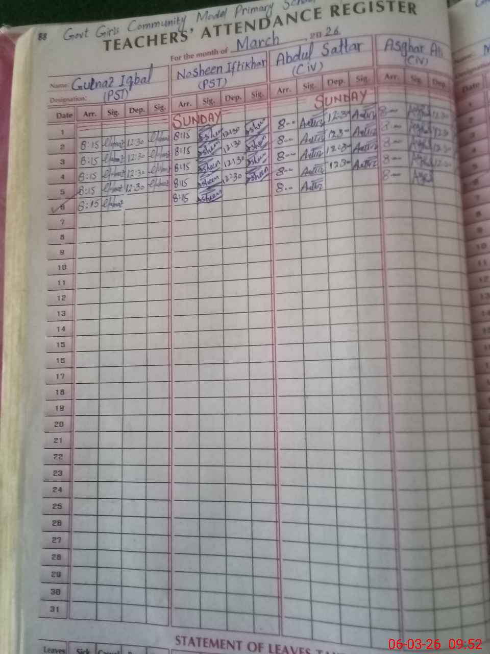 | CNIC | Full Name | Designation | R/C | Absence During Last Calender Month |