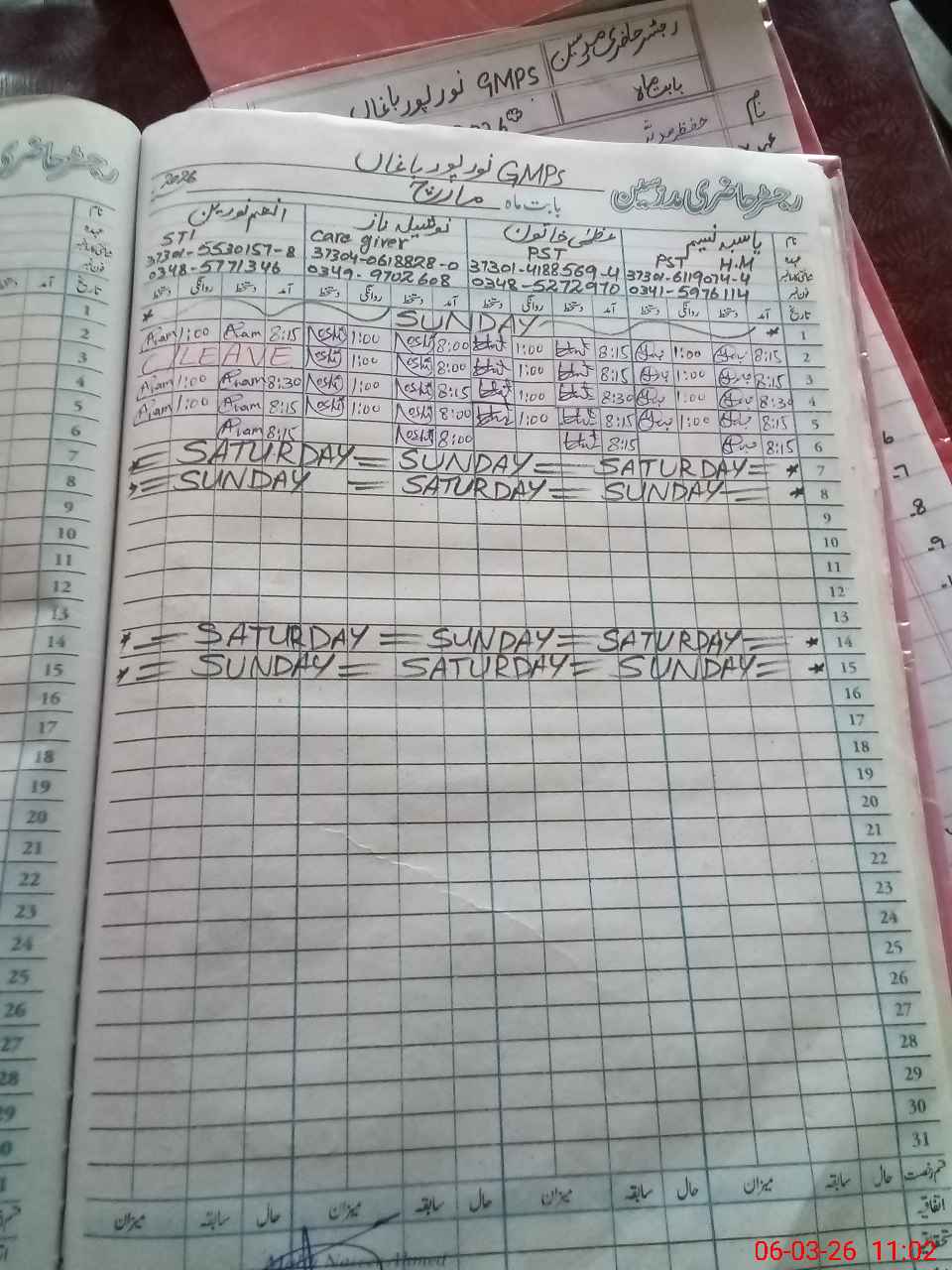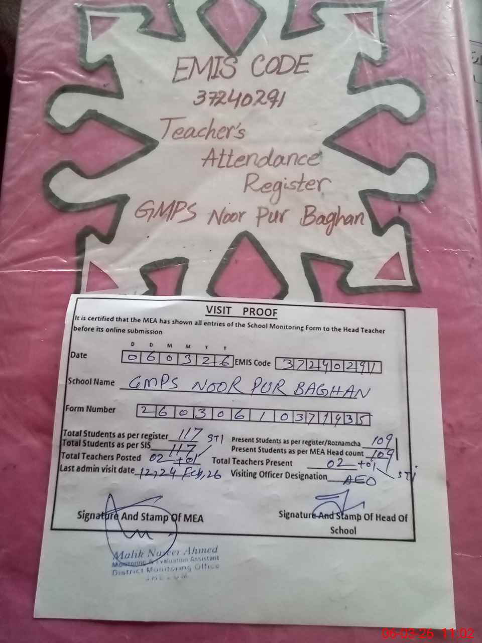 | EMIS Code: 37240291 | Name of School: GMPS NOOR PUR BAGHAN | |||
