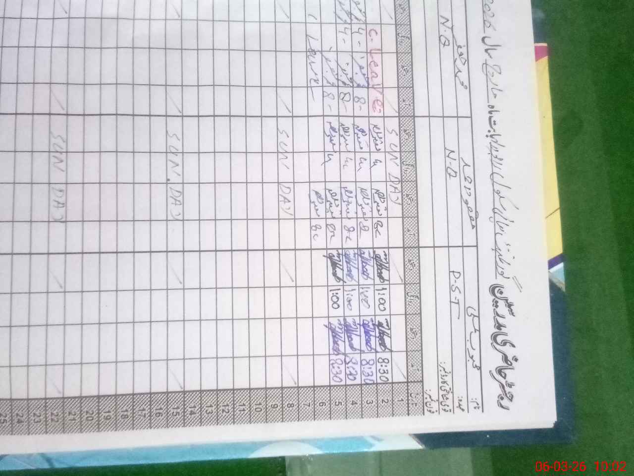 | Remarks (Use Separate Page if Required): pst Mehboob marked absent as blank his column of register nsb and book s record with head teacher on duty | |||||