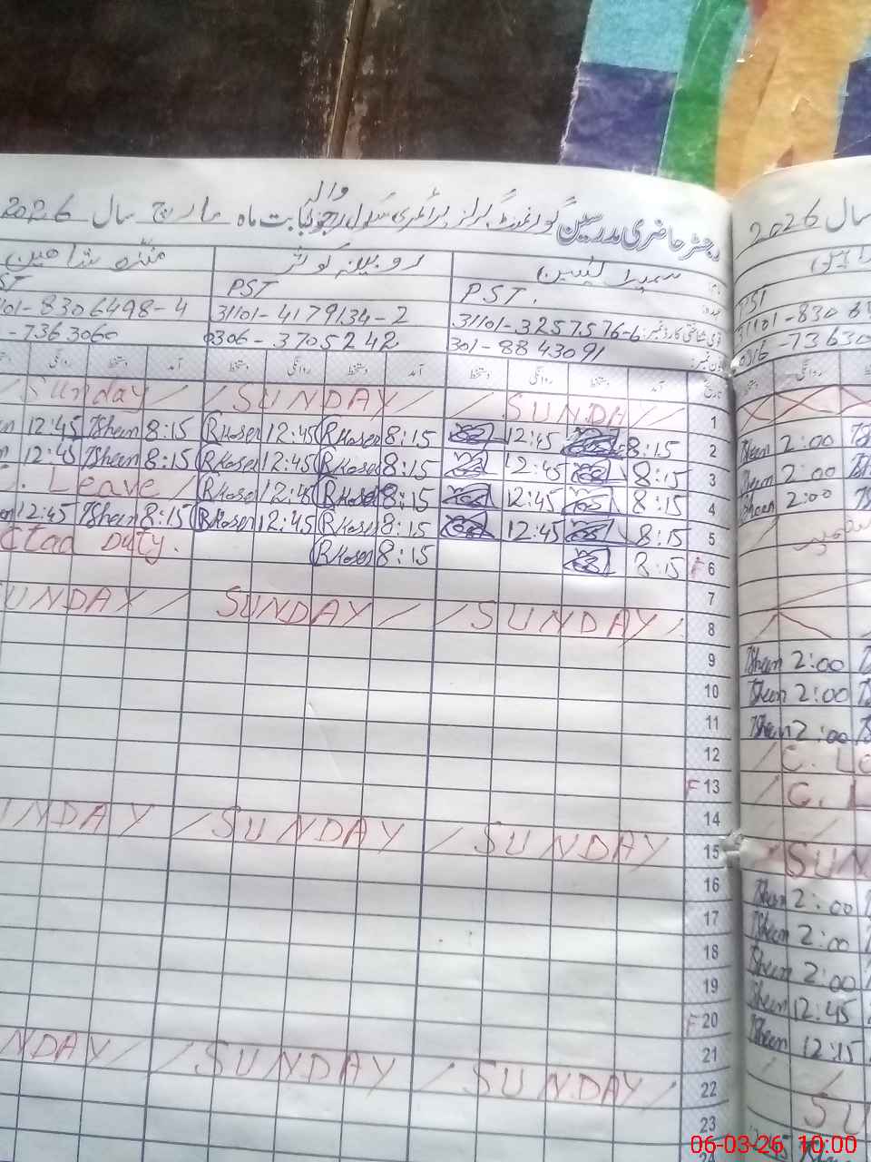 | 31**** | Mu**** Sh**** | PST Arts | Regular | 0 | 0 | 0 | 0 | 0 | 0 | 0 | 0 | 0 | Exam Duty |