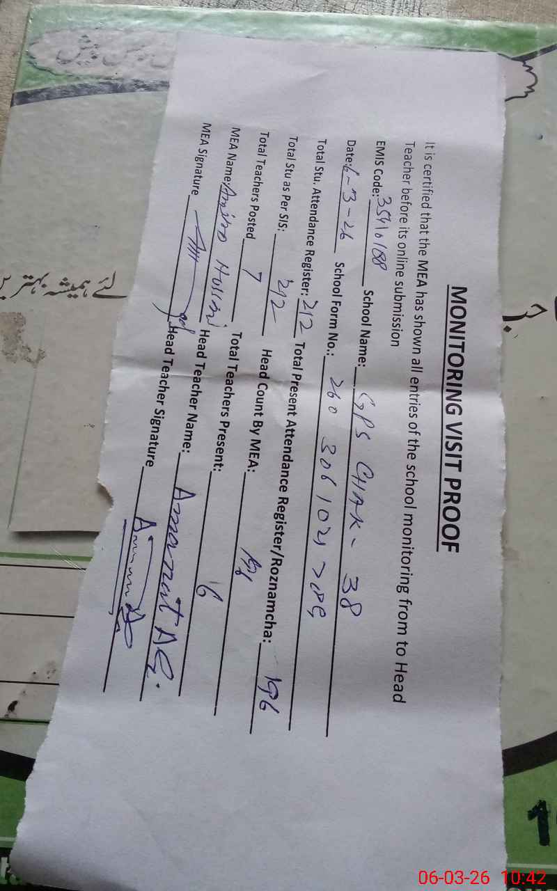 | EMIS Code: 35410188 | Name of School: GPS CHAK NO. 38 FEROZWALA | |||