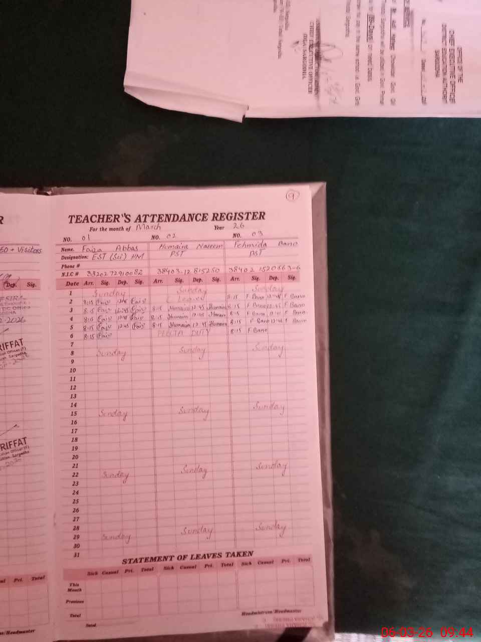 | 38**** | Hu**** Na**** | PST Science/Maths | Regular | 0 | 0 | 0 | 0 | 0 | 0 | 0 | 0 | 0 | Exam Duty |