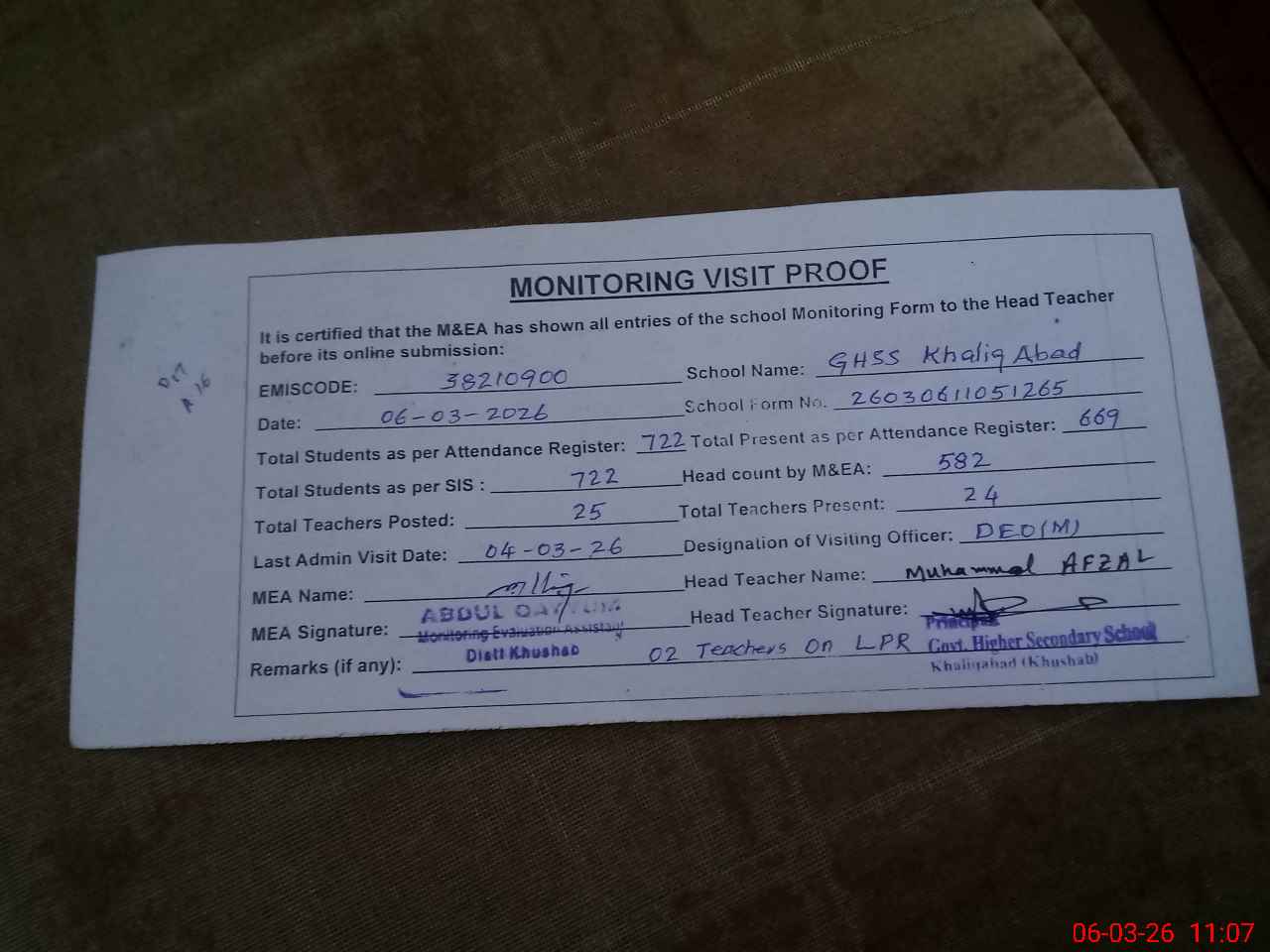 | EMIS Code: 38210900 | Name of School: GHSS KHALIQ ABAD | |||