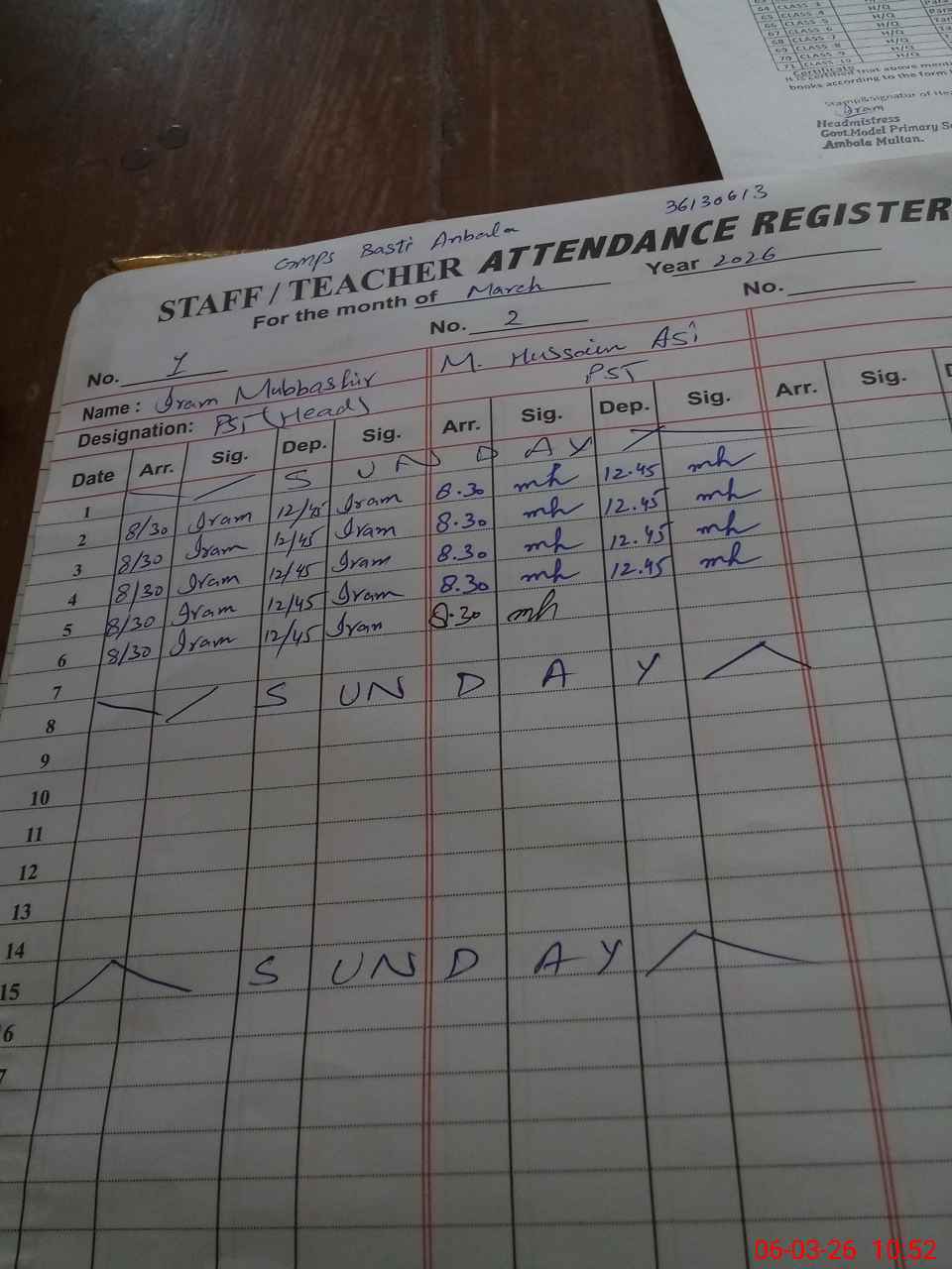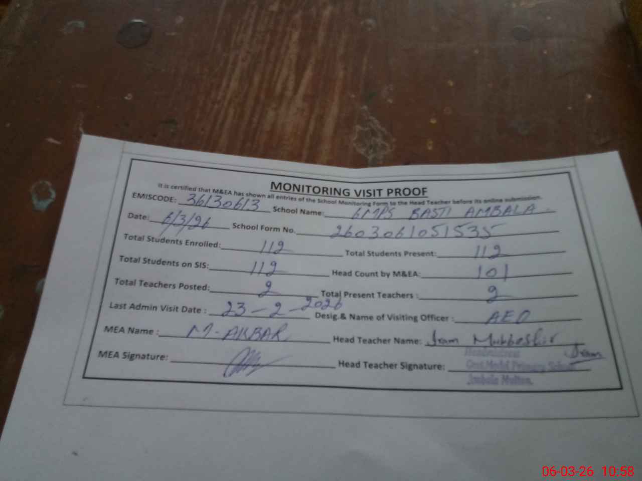 | EMIS Code: 36130613 | Name of School: GMPS BASTI ANBALA MULTAN | |||