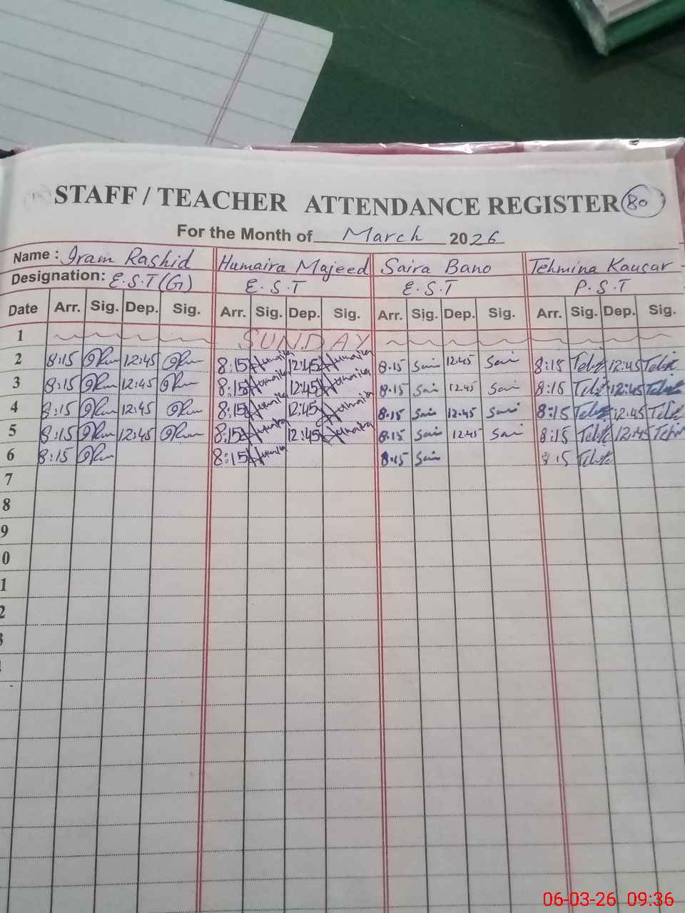 | District: LAHORE | Tehsil: CANTT | Markaz: HADIARA-FEMALE | Level: Middle | |