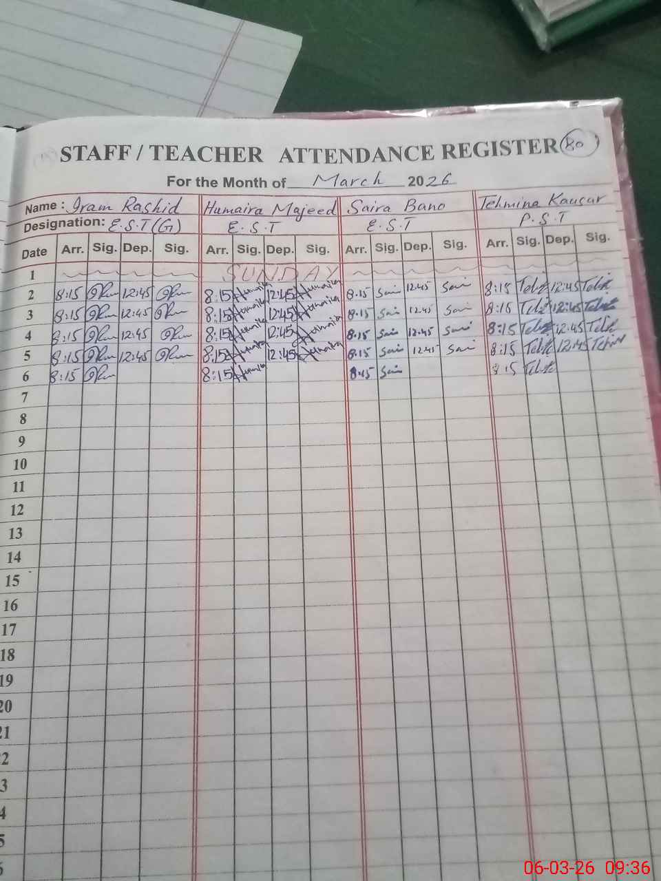 | Name: Ir**** Ra**** Designation: (School Headmaster's/Headmistress's) Est Phone/Cell Number: 03**** |