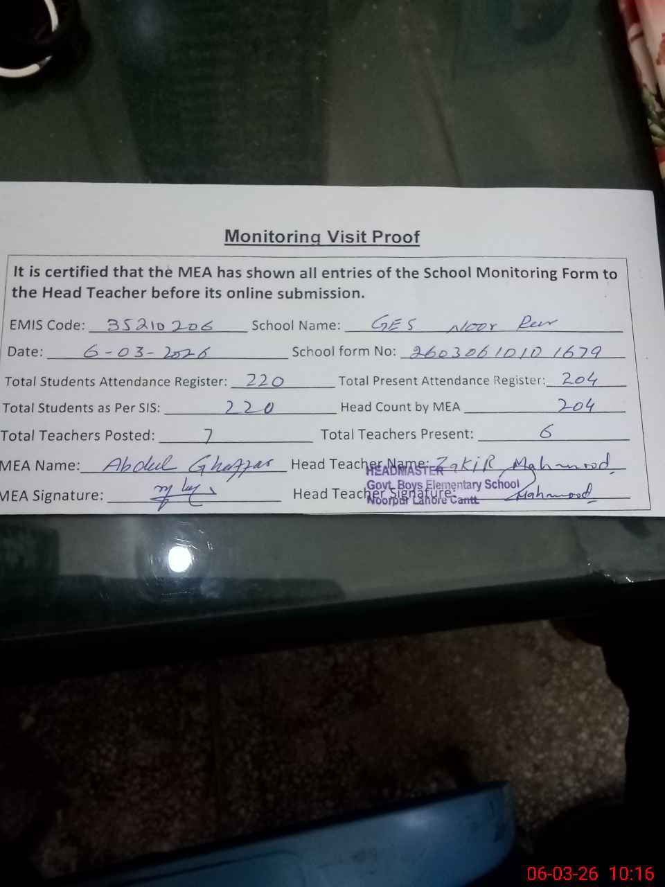 | EMIS Code: 35210206 | Name of School: GES NOOR PUR | |||
