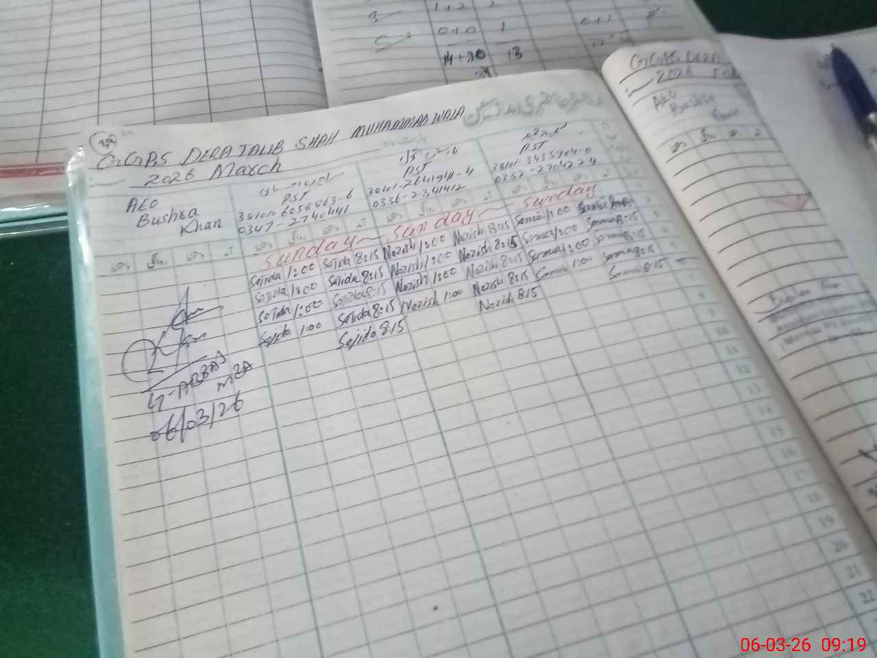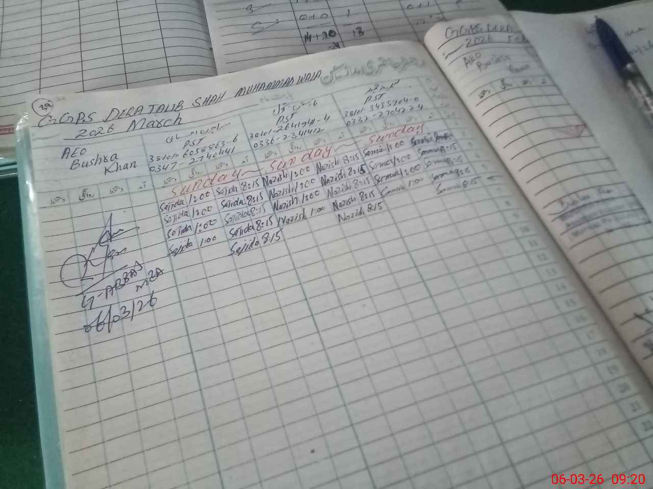 | Remarks (Use Separate Page if Required): last seen by Name Bushra Khan Designation AEO Date 17 Feb 2026 | |||||