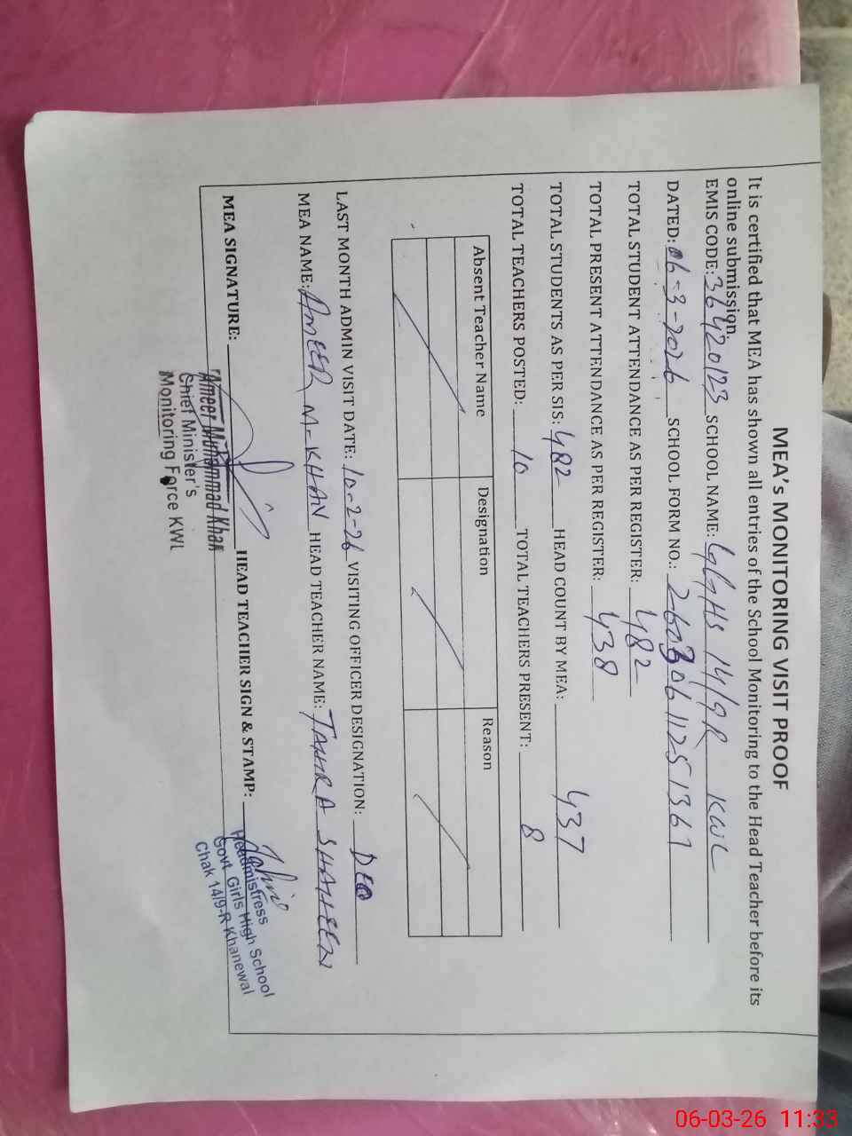 | EMIS Code: 36420123 | Name of School: GGHS 14/9-R, KACHA KHUH | |||