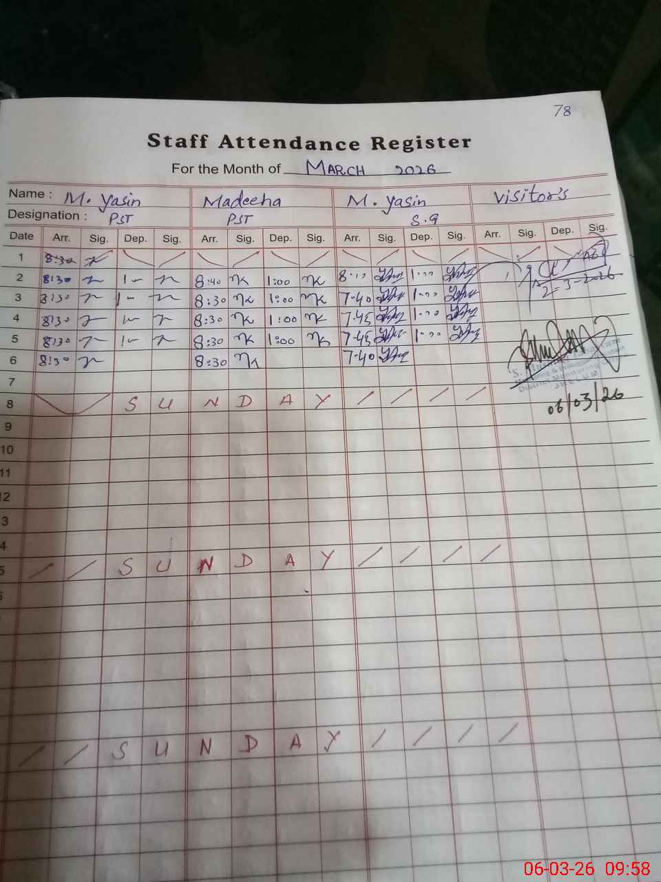 | Remarks (Use Separate Page if Required): HT Uzma Choudhary is on Ex Pakistan Leave | |||||