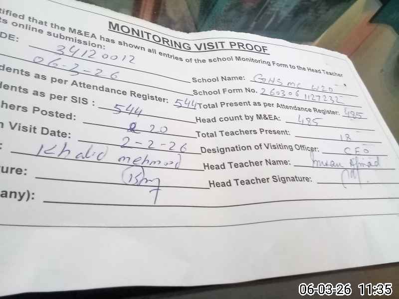| Attendance Register | Head Teacher | MEA with School | Visit Proof |