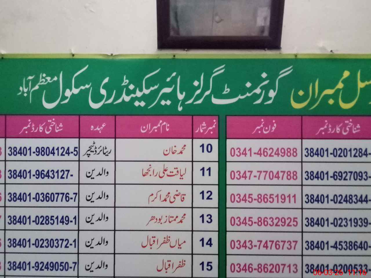 | EMIS Code: 38460045 | Name of School: GGHSS MUAZZAM ABAD | |||