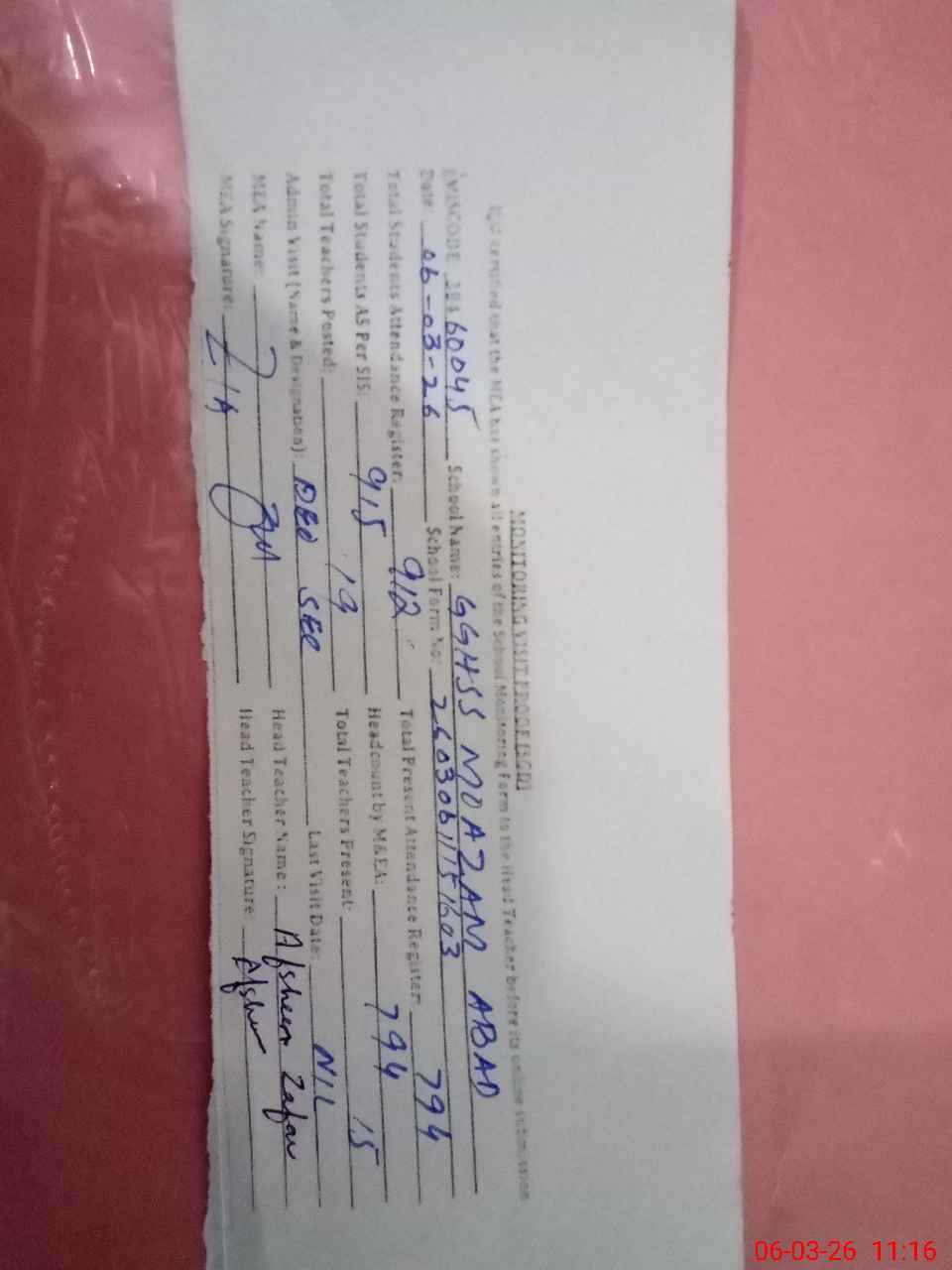 | Certified that this School was Inspected by the Undersigned MEA/DMO Today and the Information Stated Above is as Per Record. | |||||