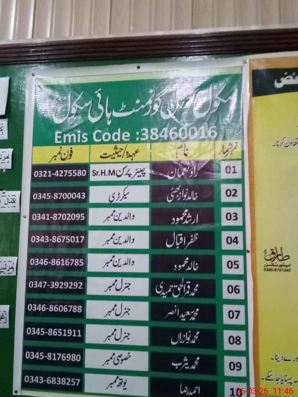 | EMIS Code: 38460016 | Name of School: GHS MUAZZAM ABAD | |||