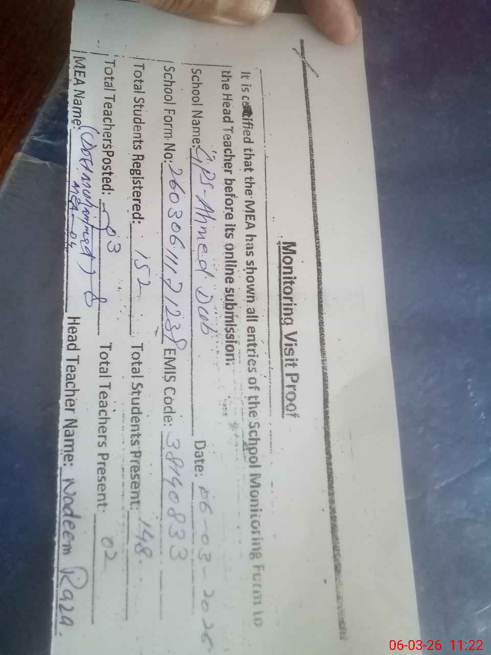 | EMIS Code: 38140883 | Name of School: GPS AHMAD DUB | |||