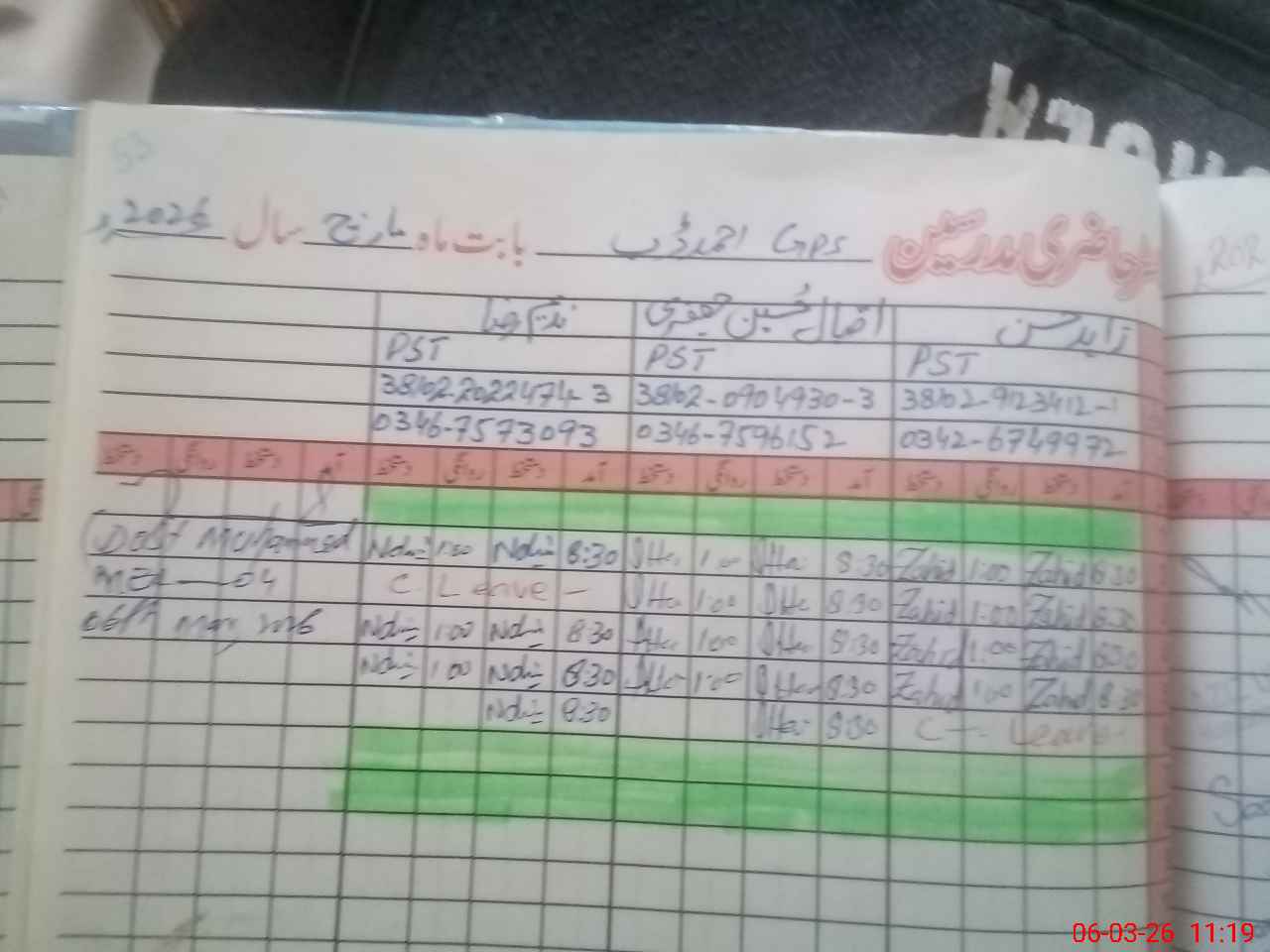 | Name: Za**** Hu**** Designation: (School Headmaster's/Headmistress's) PST Phone/Cell Number: 03**** |