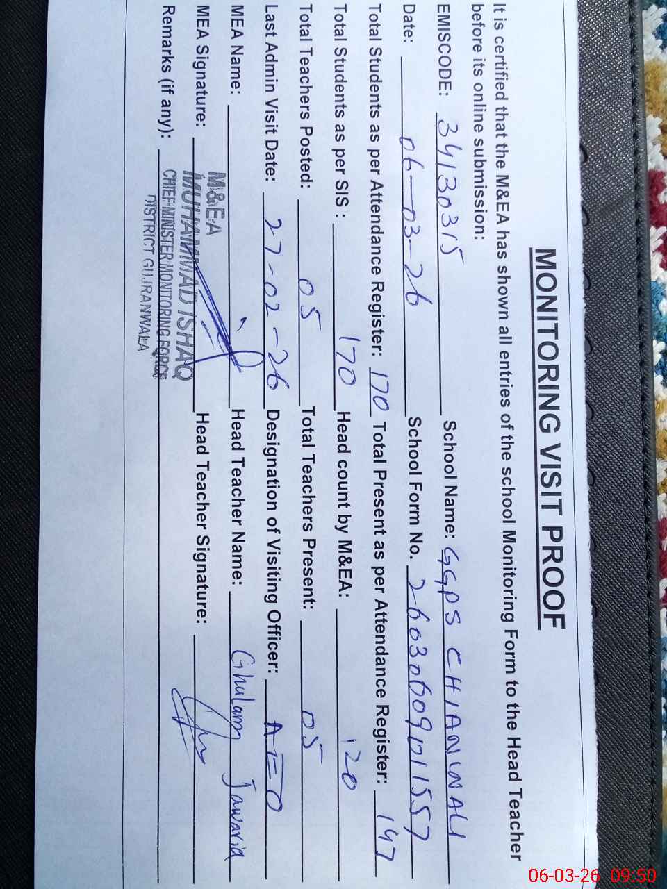 | EMIS Code: 34130315 | Name of School: GGPS CHIANWALI SHARQI | |||