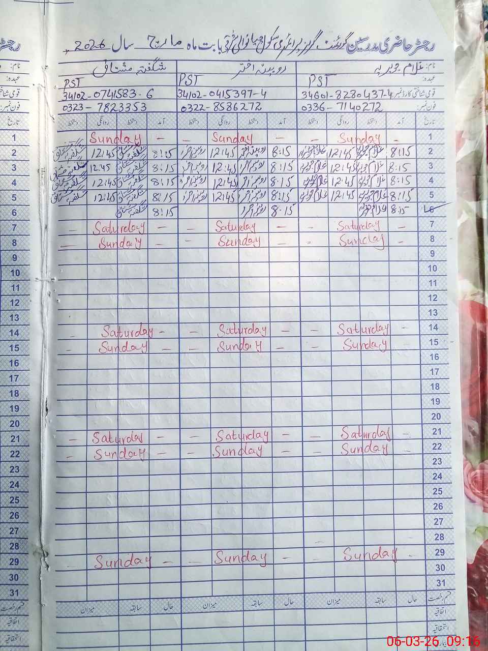 | Name: Gh**** Ja**** Designation: (School Headmaster's/Headmistress's) PST Phone/Cell Number: 03**** |