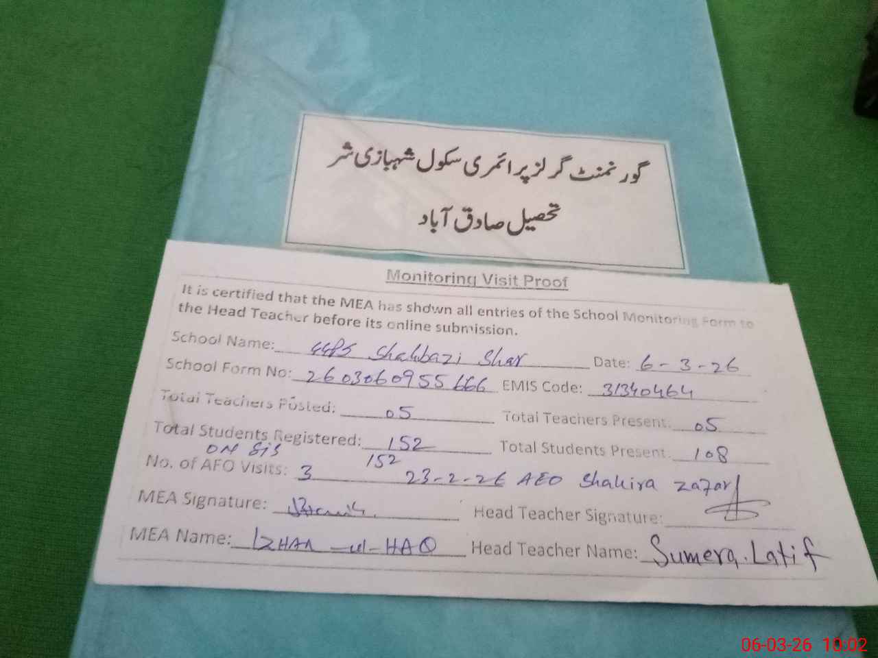 | EMIS Code: 31340464 | Name of School: GGPS SHABAZI SHAR | |||