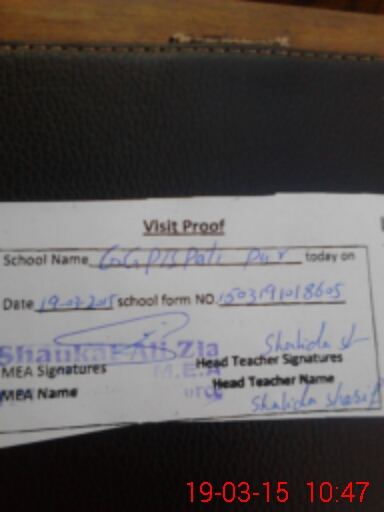 | EMIS Code: 39310604 | Name of School: GGPS PATI PUR (SULTAN NAGAR) | |||