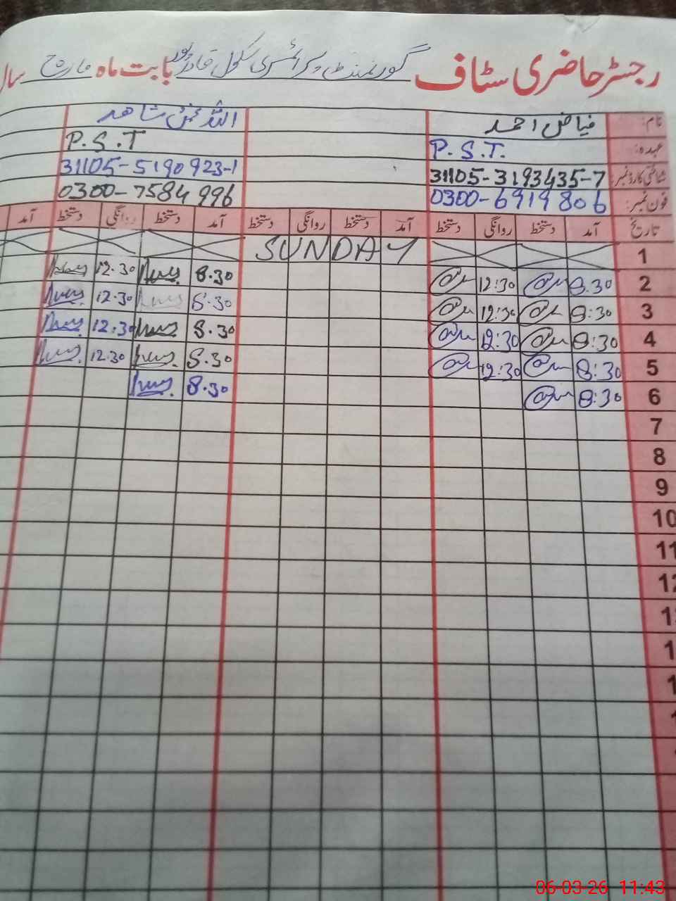 | Name: FI**** AH**** Designation: (School Headmaster's/Headmistress's) P S T Phone/Cell Number: 03**** |