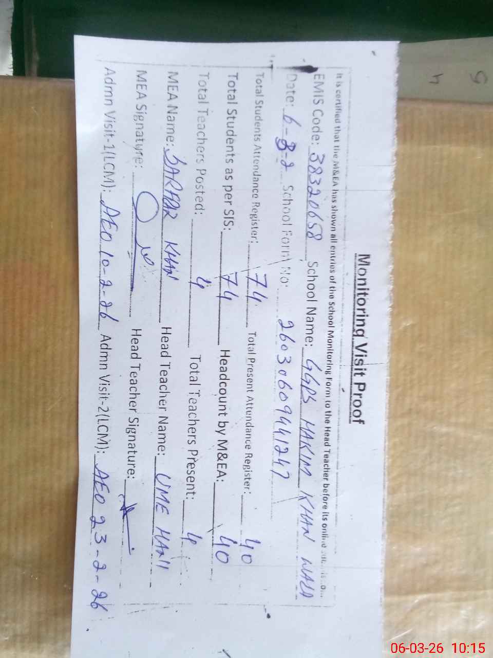 | EMIS Code: 38320658 | Name of School: GGPS HAKIM KHAN WALA | |||