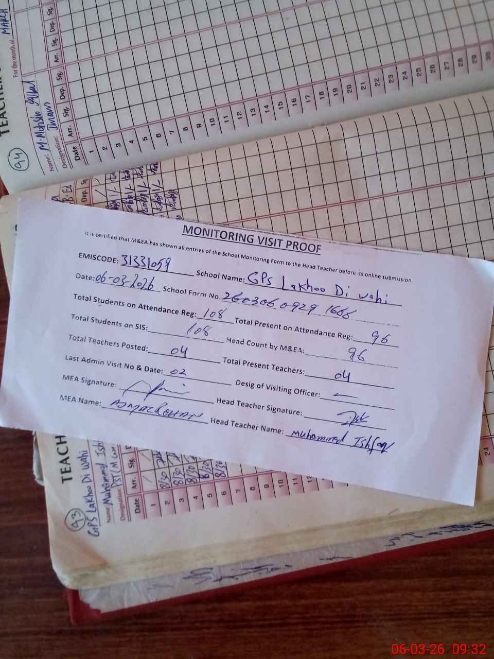 | EMIS Code: 31331059 | Name of School: GPS LAKHOO DI WAHI | |||