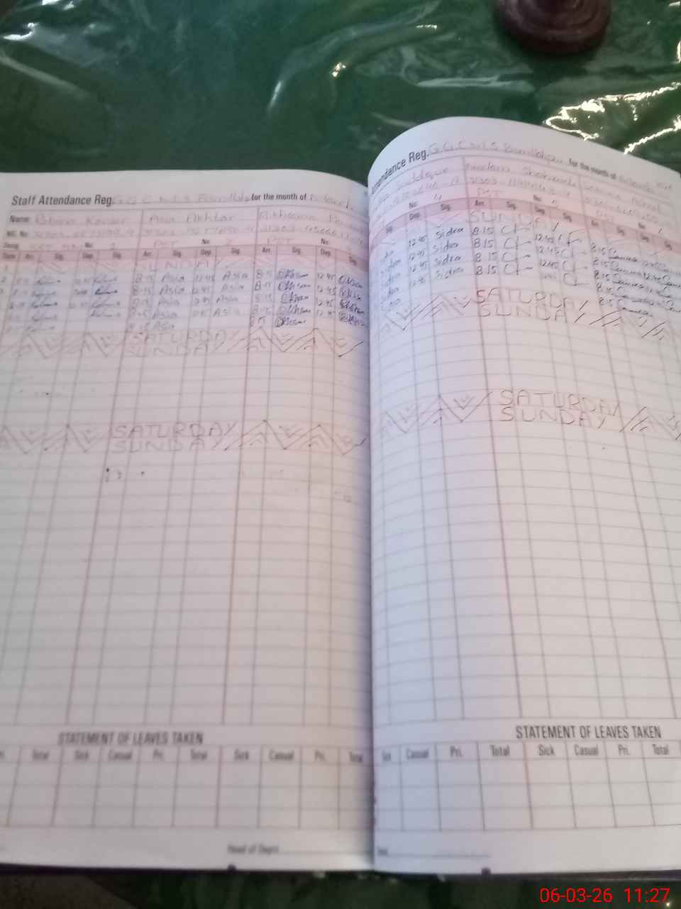 | CNIC | Full Name | Designation | R/C | Absence During Last Calender Month |