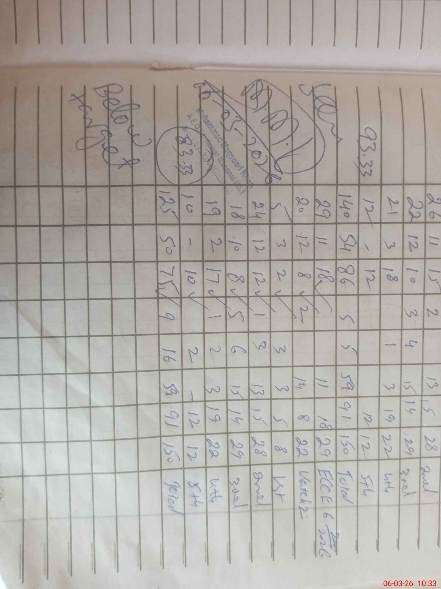 | No. of Students Present - Male | 0 | 18 | 2 | 12 | 8 | 17 | 10 | 75 | ||||||||