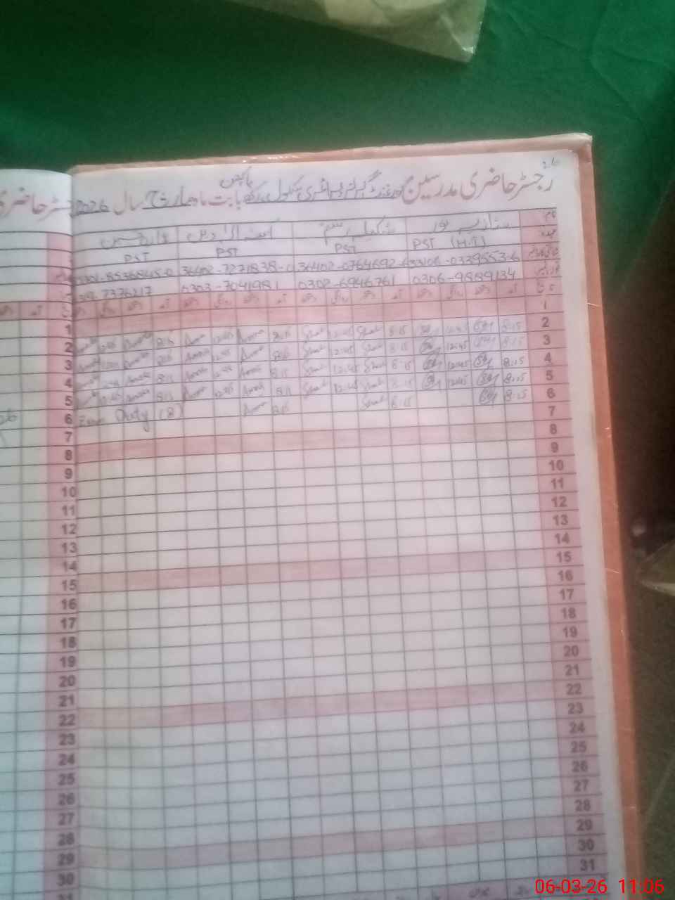 | Name: Sh**** No**** Designation: (School Headmaster's/Headmistress's) PST Phone/Cell Number: 03**** |