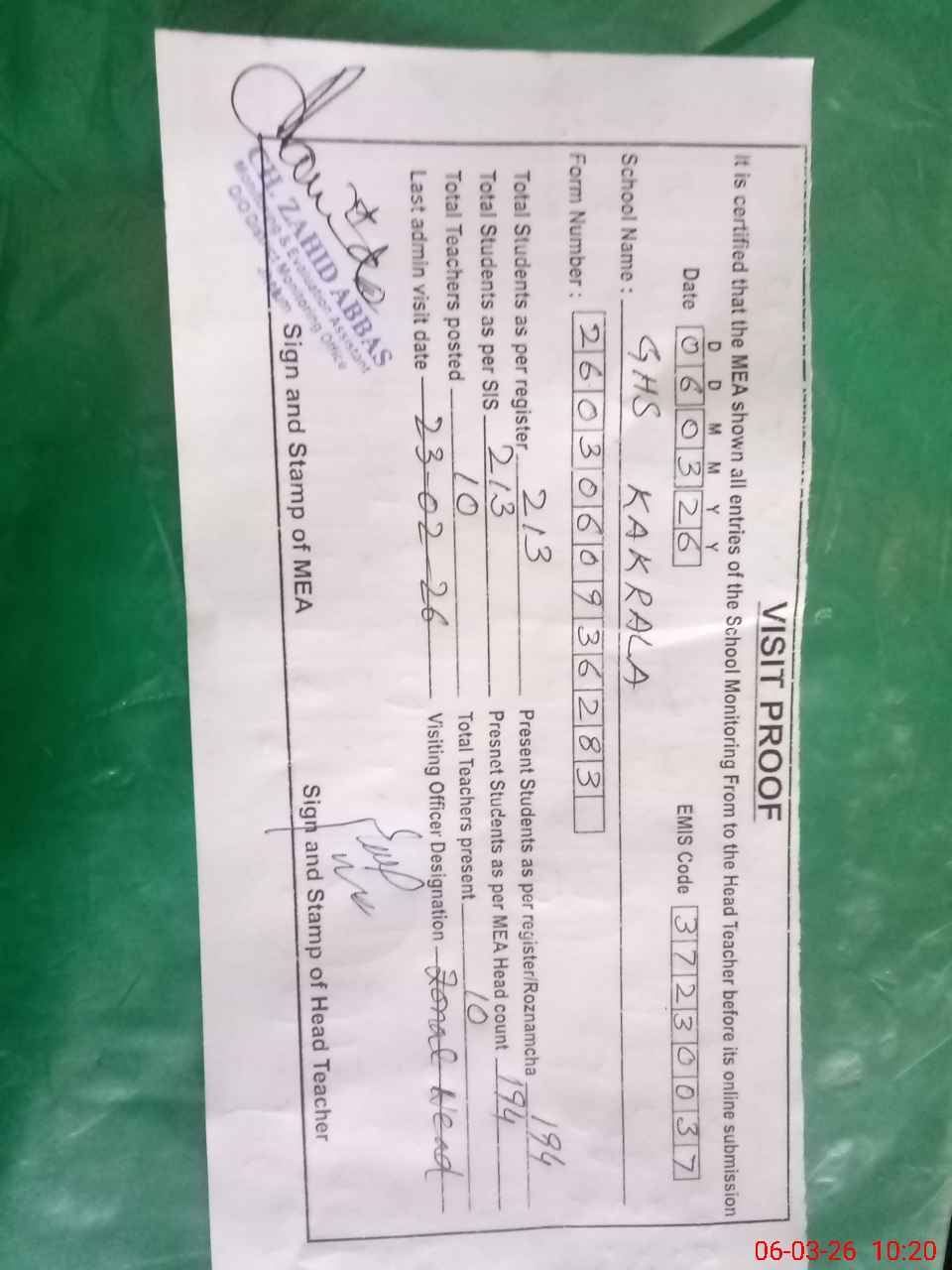 | EMIS Code: 37230037 | Name of School: GHS KAKRALA | |||