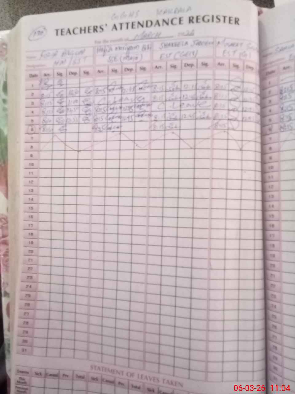 | Leave | Duty | Absent | Maternity | Medical | Ex- Pak |