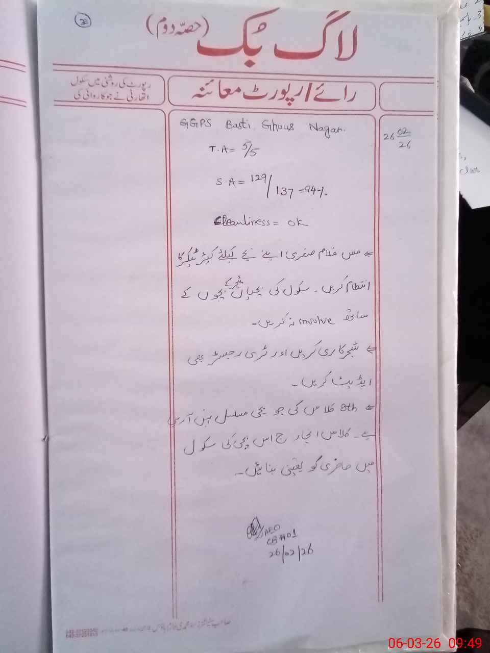 | Certified that this School was Inspected by the Undersigned MEA/DMO Today and the Information Stated Above is as Per Record. | |||||