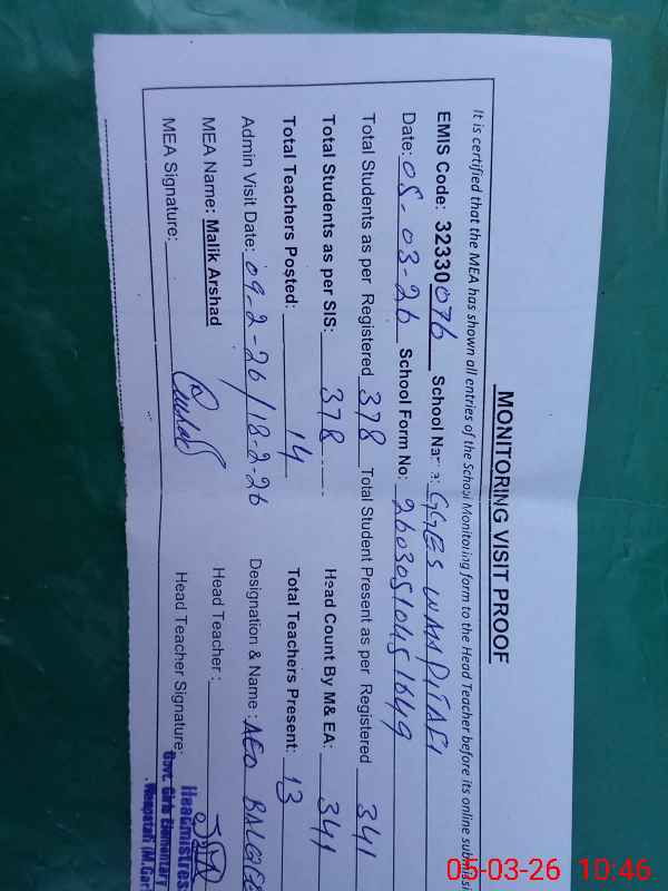 | Certified that this School was Inspected by the Undersigned MEA/DMO Today and the Information Stated Above is as Per Record. | |||||