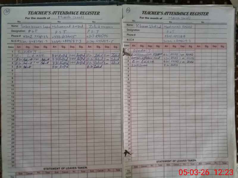 | Name: KH**** AH**** Designation: (School Headmaster's/Headmistress's) PST Phone/Cell Number: 03**** |