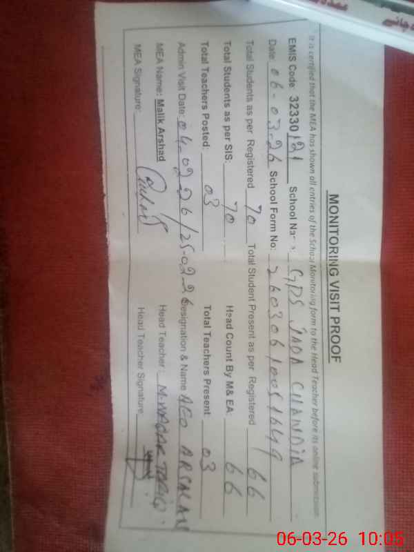 | EMIS Code: 32330121 | Name of School: GPS JADA CHANDIA | |||