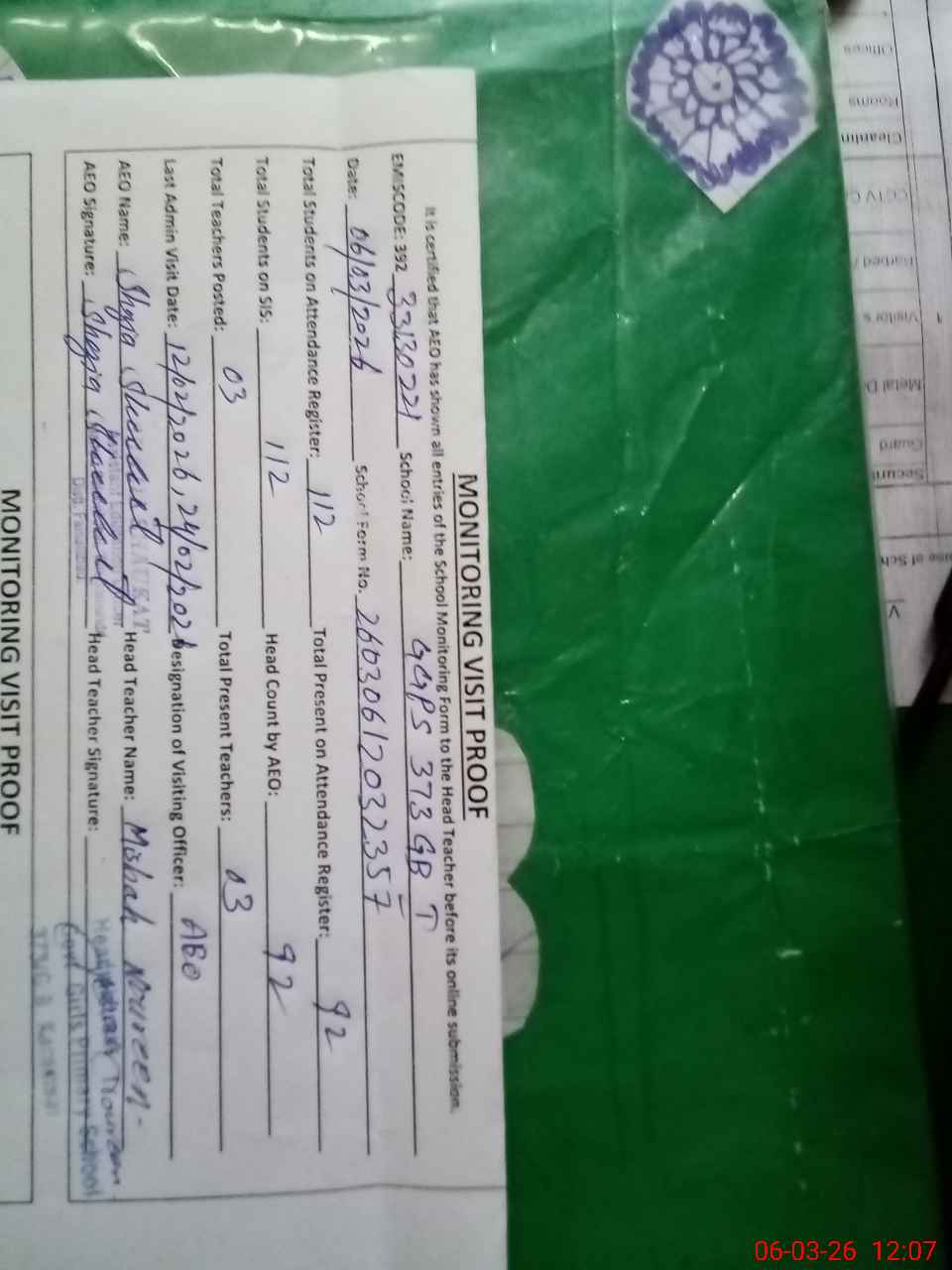 | EMIS Code: 33130221 | Name of School: GGPS CHAK 373 GB KARAM SAR SAMUNDRI | |||