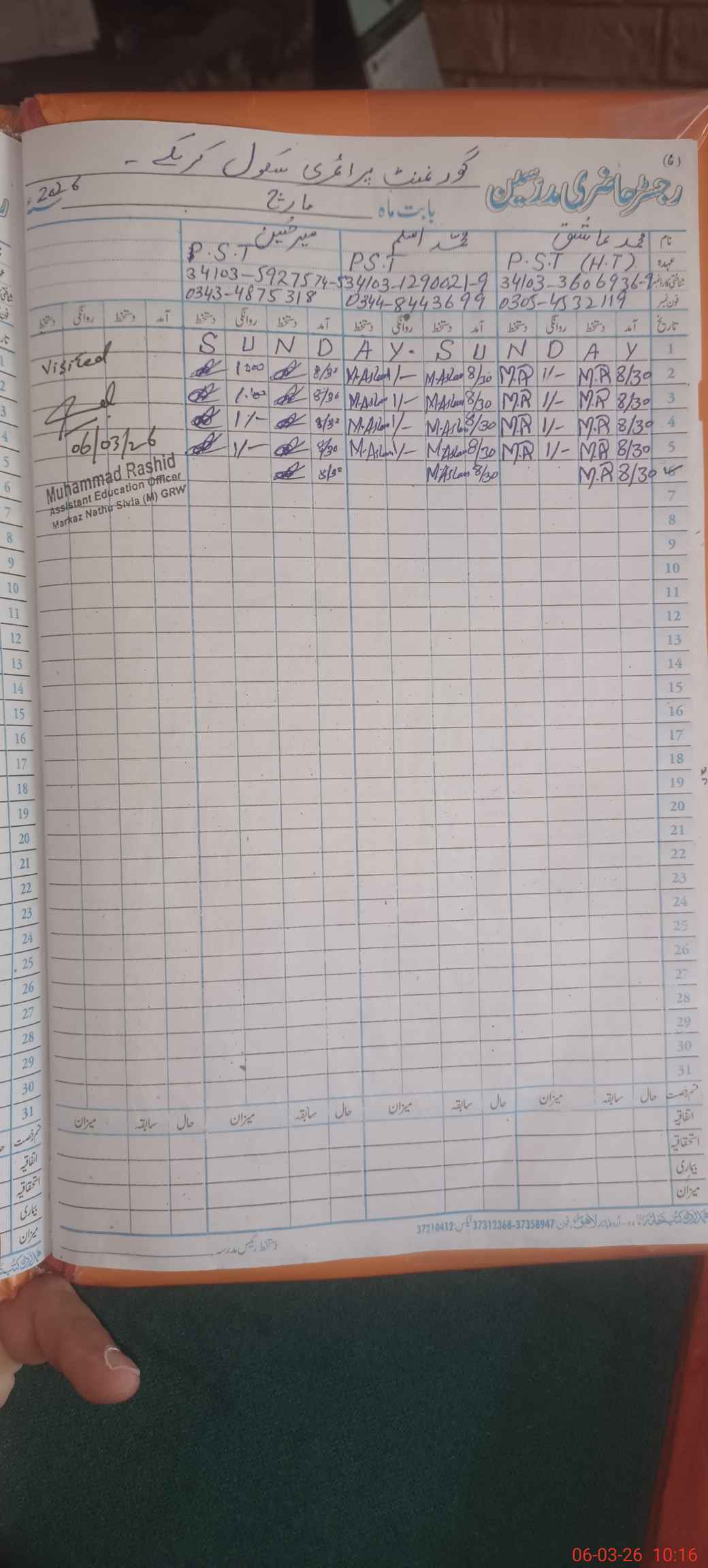 | Name: MU**** AS**** Designation: (School Headmaster's/Headmistress's) PST Phone/Cell Number: 03**** |