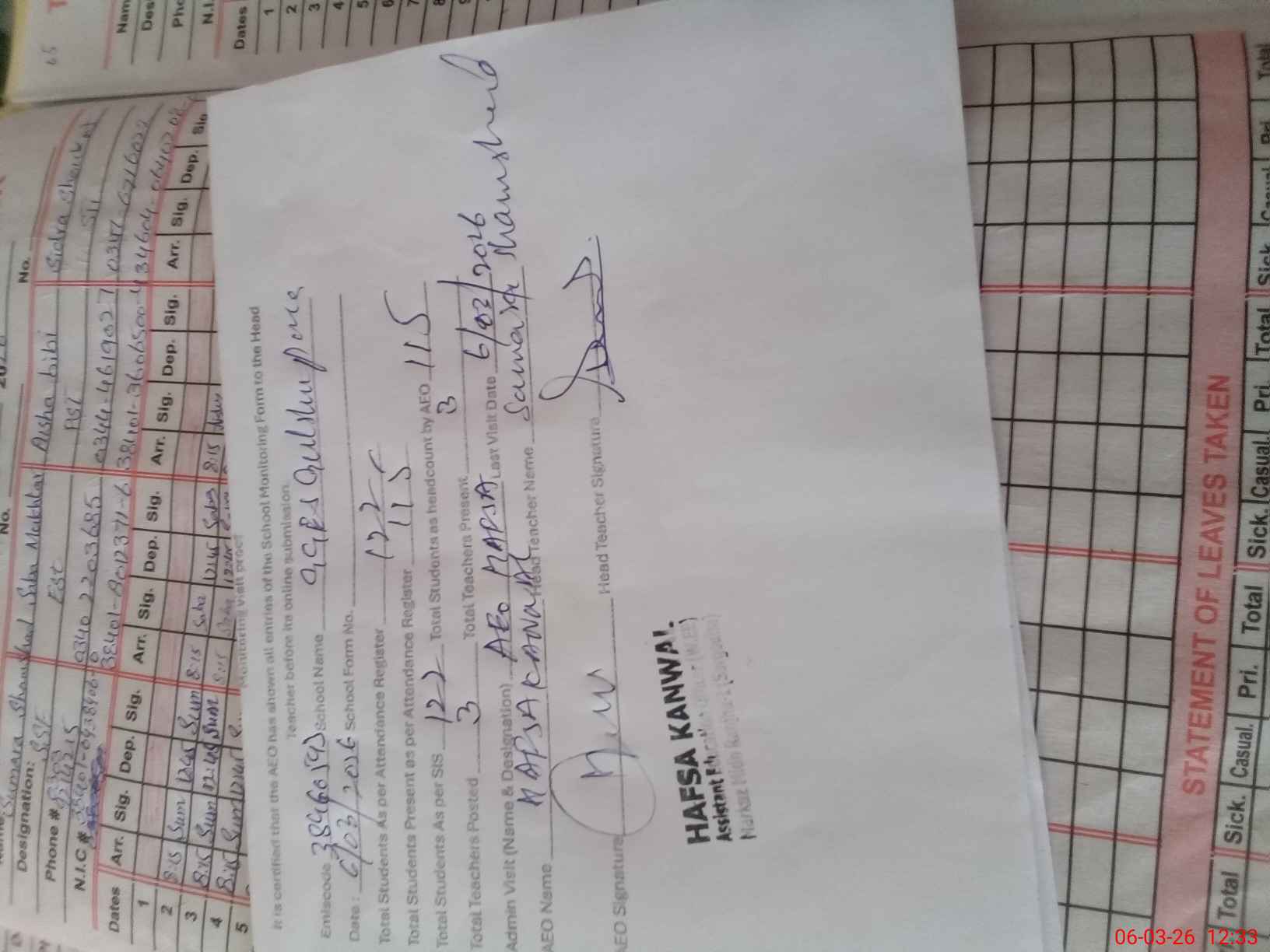 | Attendance Register | Head Teacher | MEA with School | Visit Proof |