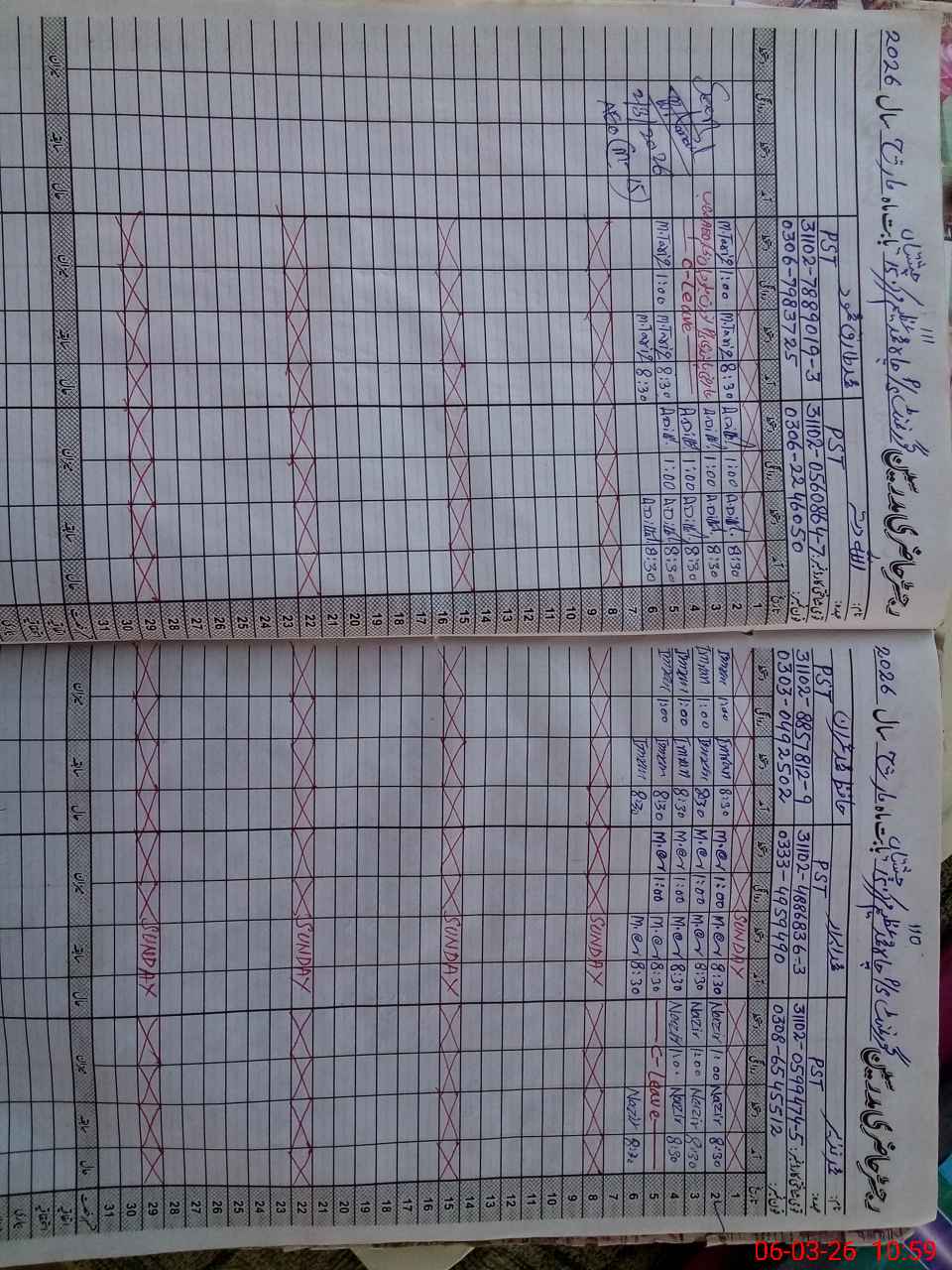 | CNIC | Full Name | Designation | R/C | Absence During Last Calender Month |