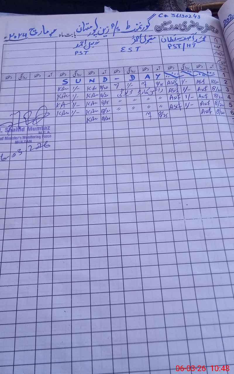 | Name: MU**** AS**** SU**** Designation: (School Headmaster's/Headmistress's) PST Phone/Cell Number: 03**** |