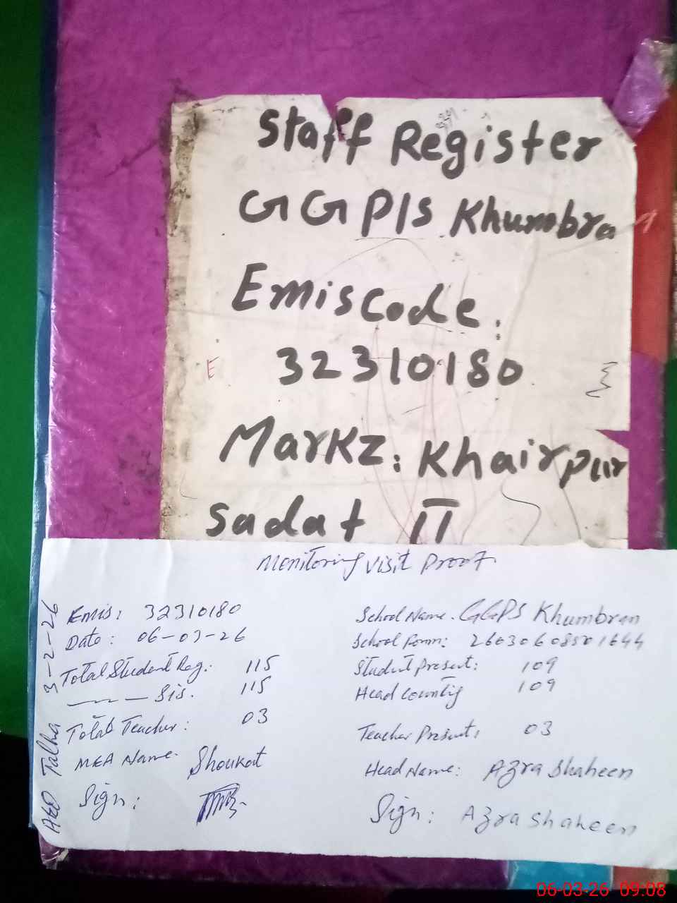 | EMIS Code: 32310180 | Name of School: GGPS KHUMBRAN | |||