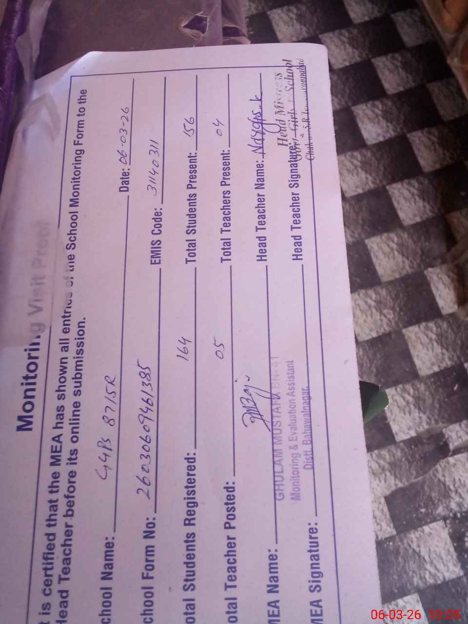 | Certified that this School was Inspected by the Undersigned MEA/DMO Today and the Information Stated Above is as Per Record. | |||||