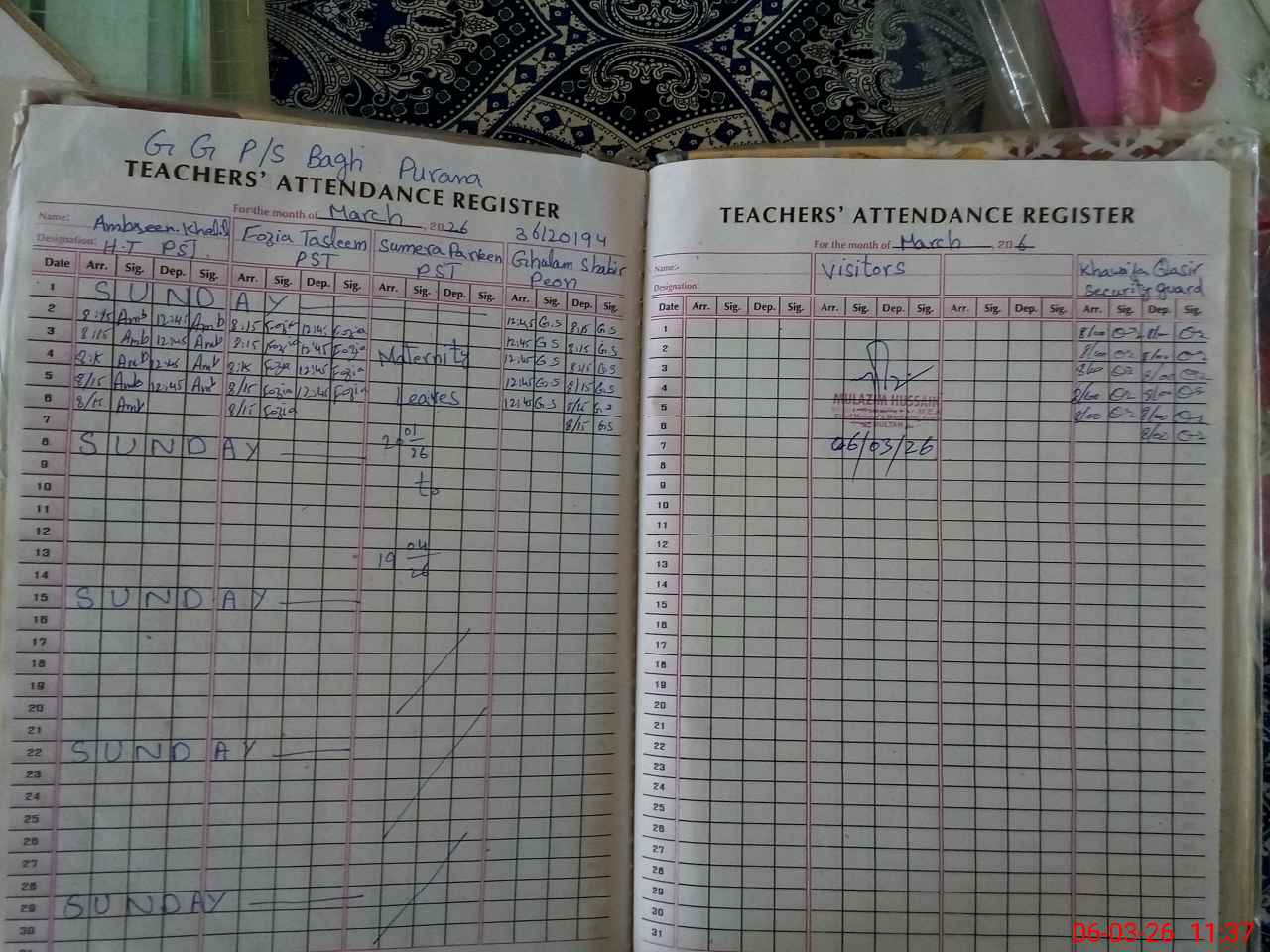 | Name: Am**** Kh**** Designation: (School Headmaster's/Headmistress's) HEADMISTRESS Phone/Cell Number: 03**** |