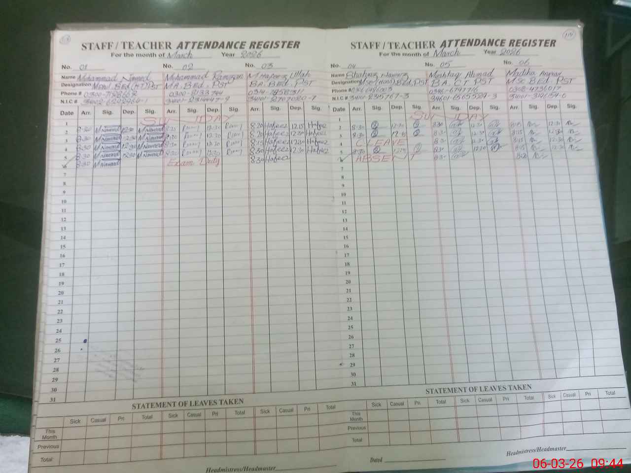 | 34**** | Sh**** Na**** | ESE Science | Contract | 6 | 0 | 0 | 0 | 0 | 0 | 0 | 0 | 6 | Absent (Un-Authorized) |