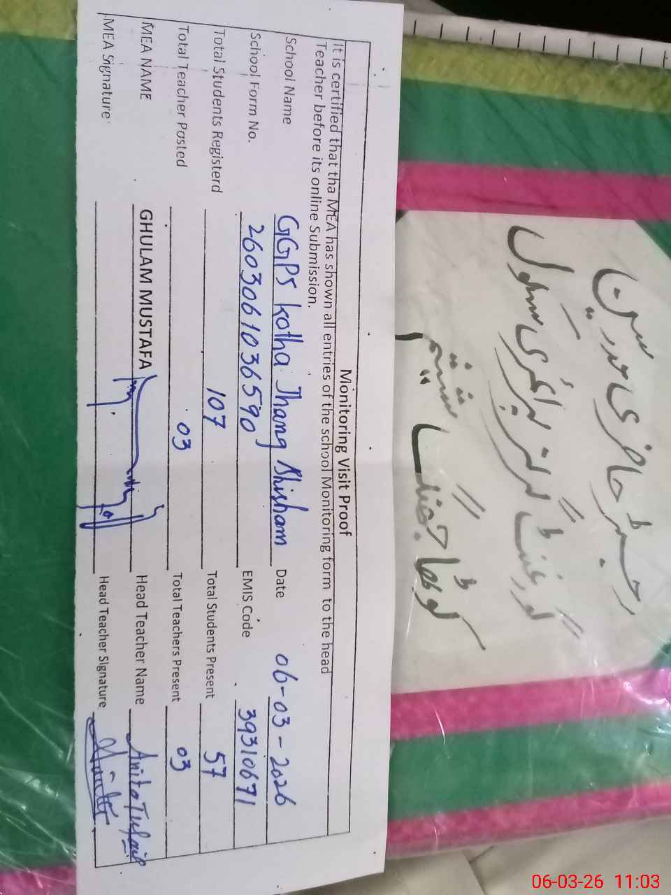 | EMIS Code: 39310671 | Name of School: GGPS KOTHA JHANG SHISHAM | |||