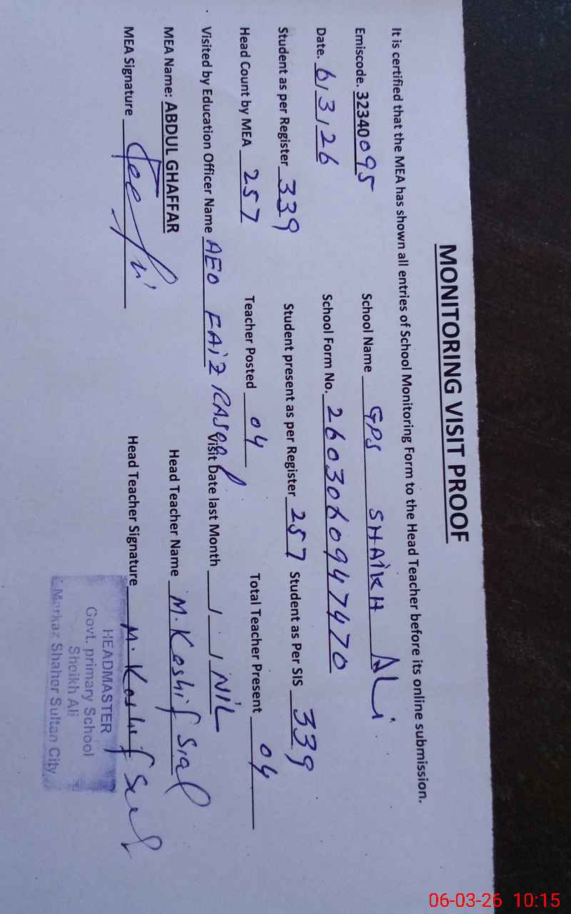 | EMIS Code: 32340095 | Name of School: GPS SHEIKH ALI | |||