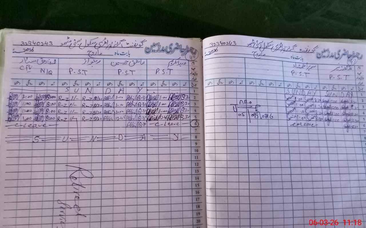 | Name: SH**** AK**** Designation: (School Headmaster's/Headmistress's) PST Phone/Cell Number: 03**** |